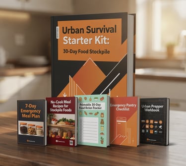 Urban Survival Starter Kit: 30-Day Food Stockpile is a practical, beginner-friendly digital guide that helps city apartment dwellers build an affordable, realistic 30-day emergency food supply using everyday pantry items — with checklists, shopping lists, no-cook meal ideas, and tips to stay prepared calmly and without panic.